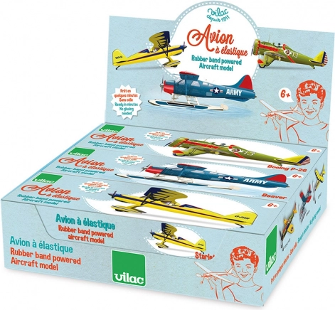 Det lette VILAC-flybyggesæt med optrækspropel på elastik glæder både små og store piloter. Fremstillet af robust polystyren, byder det på nem montering og 3 attraktive varianter (f.eks. Boeing P‑26, Beaver). Ideelt til børn fra 6 år, mål 37 × 45 × 5,5 cm.