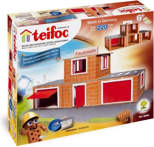 Med TEIFOC byggesættet brandstation oplever børn realistisk byggeri: de blander mørtel, smører murstenene og bygger trin for trin deres egen brandstation. Ægte mini mursten og vandopløselig majsmørtel giver en autentisk og sikker byggeoplevelse.