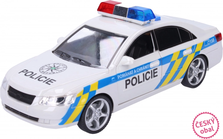 Realistisk politibil til små helte med lys- og lydeffekter, tjekkisk emballage og design og en praktisk længde på 24 cm. Inkluderer 3× AG13-batterier, så legen kan begynde med det samme efter udpakning.