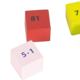 Farverige træklodser med opgaver motiverer børn til at opdage og gentage multiplikation hver dag.