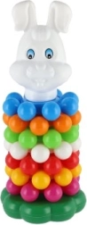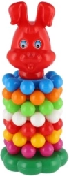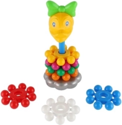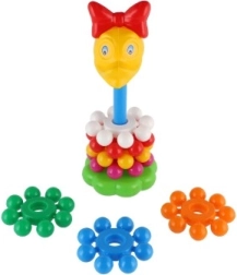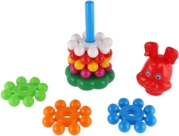 Denne legesyge plastpyramide med ringe er det ideelle første didaktiske legetøj til de mindste. Børn griber let ringene og stabler dem på stangen, hvorved de naturligt træner finmotorik, koordinationsevner samt skelnen mellem farver og størrelser. Takket være højden på 26 cm er tårnet stabilt, let at se og indbyder til gentagen afprøvning.