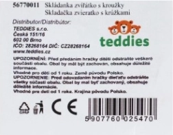 Legetøjet er fremstillet af holdbar, let plast med glatte kanter og fås i 3 varianter med forskellige ringformer og sjove dyremotiver på toppen. Den praktiske netpose gør det nemt at opbevare og transportere.