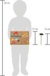 Dette kreative bankespil er et ideelt valg til børn, der elsker at skabe og er fascineret af brandvæsenet. Takket være det enkle system med dele med forborrede huller og en sikker træhammer kan børn nemt samle deres egne motiver på korkpladen eller bruge de medfølgende dobbeltsidede kort med motivforslag.