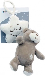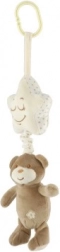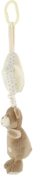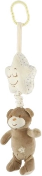 Denne søde ophængte legetøjsfigur kombinerer en bamse med en cremefarvet stjerne, indeni hvilken der er en spilledåse. Når du trækker i bamsen, spiller en behagelig vuggevise, som beroliger babyen og støtter rolig indsovning både hjemme og på farten.