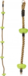 Small Foot Sky klatrereb forvandler enhver have eller legekrog til et lille eventyr. De grønne plastskiver fungerer som sikre trin til både hænder og fødder, det robuste nylonreb er behageligt at røre ved og samtidig slidstærkt. Den praktiske metalring gør det nemt at hænge op i et træ, et legetårn eller en stang.