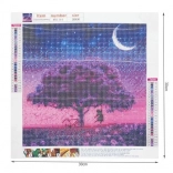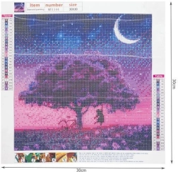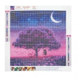 Motivet med træet i rosa‑lilla toner og halvmåne giver en betagende glitrende effekt, som tager sig flot ud både med og uden ramme. Diamantmaling er ideel til mental ro, udvikling af finmotorik og kreativitet – velegnet til både begyndere og øvede.