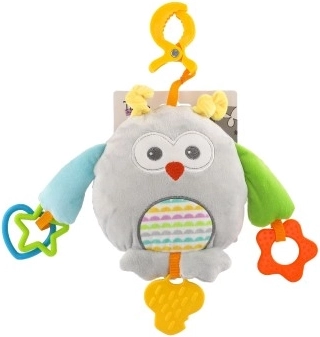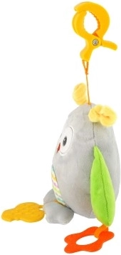 Denne plysugle er en ideel ledsager både på farten og derhjemme. Takket være den universelle klips fastgør du den nemt på barnevogn, autostol eller kanten af tremmesengen. Den bløde krop, varierede teksturer og tydelige farver stimulerer naturligt babyens syn, berøring og hørelse.