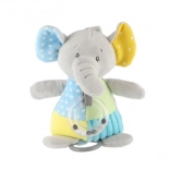Giv dit barn glæde med en charmerende plys-elefant, hvis bløde og behagelige overflade er perfekt til at kramme. Ud over den beroligende melodi, der afspilles via optræksmekanismen, er legetøjet udstyret med en rangle med kugler, hvilket bidrager til udviklingen af høresansen.