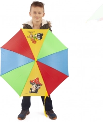 Ikke mere stress før en byge – børneparaplyen med KRTEK-motiv er praktisk, let og sikker til hverdagsbrug. De farverige paneler med glade illustrationer vækker glæde, og det gule, buede håndtag passer perfekt til små hænder.
