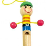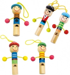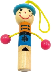 En træfløjte til børn, dekoreret med malede figurer, er både en sjov og praktisk gave. Fløjten er lavet af massivt træ og lakeret med ugiftige farver, hvilket sikrer lang holdbarhed og sikkerhed for børn. Takket være den behagelige, kraftige lyd kan den bruges til forskellige aktiviteter, som f.eks. fodbold eller til signalering.