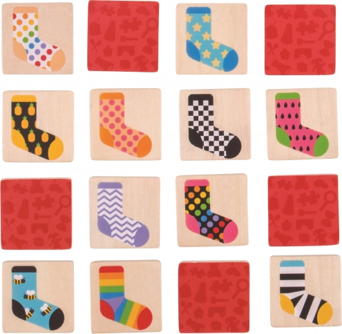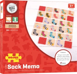 Berig spilletid med børnene ved hjælp af træ-memorihuske med sokker. Dette spil stimulerer hukommelsen og fremmer koncentration samt udvikler strategiske evner. Alt, hvad du behøver, er at placere de 32 træspillebrikker med forsiden nedad og begynde at afsløre to brikker ad gangen. Vanskeligheden vil gradvist stige, mens spillerne forsøger at matche par af sokker og udvikle nye strategier.