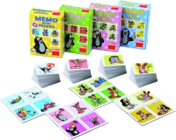 Mini vendespil med Muldvarpen er et klassisk spil for børn med solide kort, der udvikler koncentration og hukommelse. Børn leder efter par af glade dyr med de populære figurer af Zdeněk Miler.