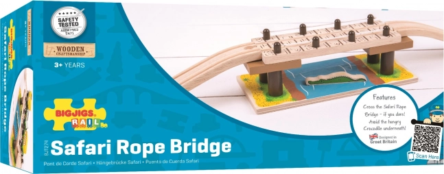 Giv børnene et spændende safari-eventyr. Den robuste hængebro med tryk af en flod og en aftagelig krokodille tilfører enhver træ-togbane et iøjnefaldende element, der stimulerer fantasien og udvikler finmotorik og koordination.
