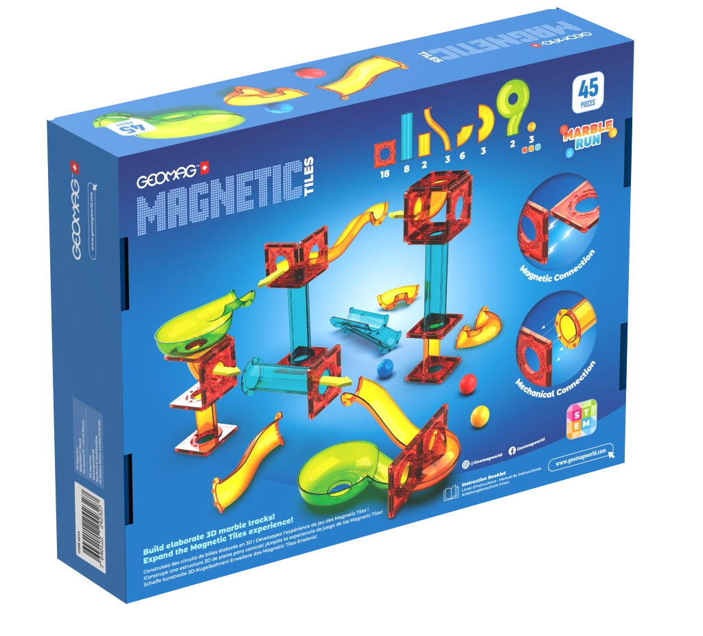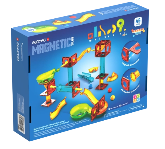Opdag den kreative verden af GEOMAG med en kuglebane på 45 dele, som giver børn mange timers leg og læring. Sættet tilbyder farvede, gennemsigtige dele, baner og sving samt magnetiske elementer for nem samling og stabilitet. Ideel til udvikling af logik, motorik og fantasi. Velegnet fra 3 år.