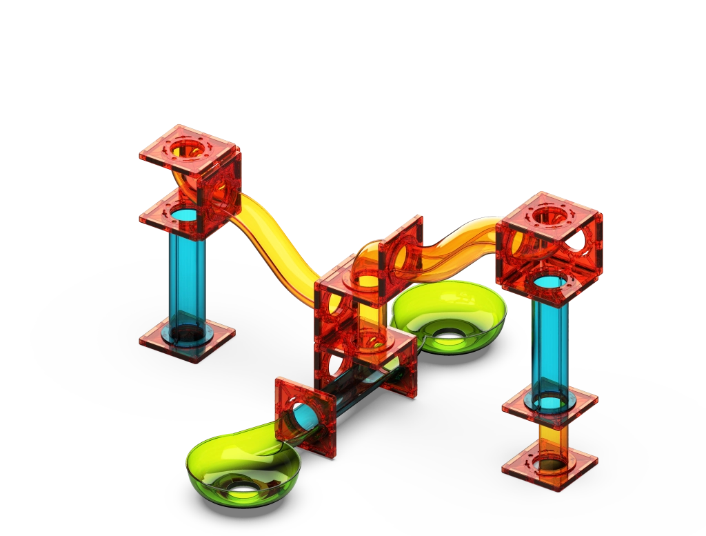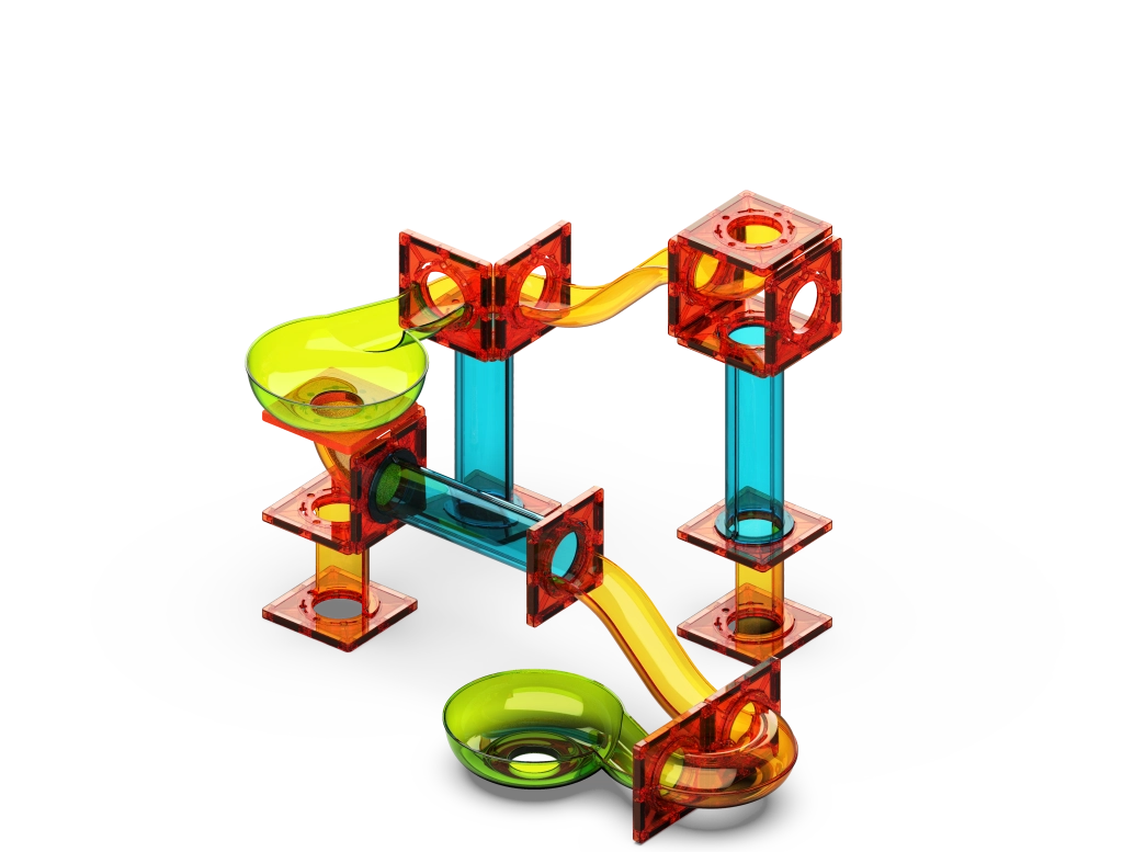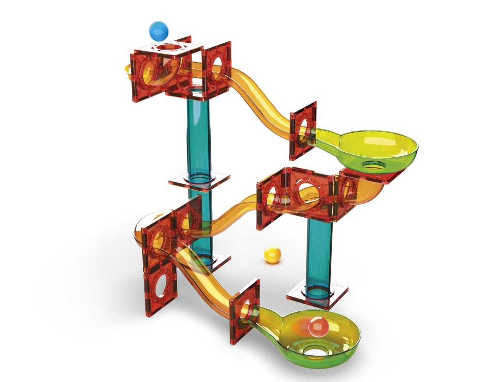 Takket være de magnetiske elementer er byggeriet stabilt, hurtigt og intuitivt. Børn træner finmotorik, rumlig forståelse og tålmodighed, mens de leger og afprøver forskellige kombinationer af baner.