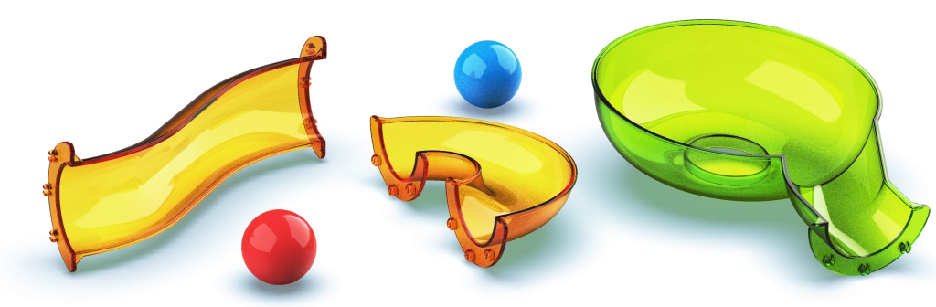 Translucent plast fremhæver kuglernes bevægelse og understøtter iagttagelse af hastighed, tyngdekraft og kørselsretning. Fremragende visuel og pædagogisk effekt.