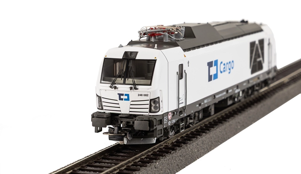 Model af det tosystremede lokomotiv BR 248 Vectron Dual Mode i ČD Cargo-udførelse (epoke VI) gengiver realistisk store sideventilationsgitre, tagkomponenter med pantograf og robuste bogier. Den kraftige midtermotor med to svinghjul sikrer rolig og jævn igangsætning selv ved træk af længere togstammer.