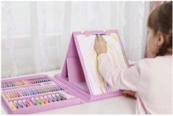 Dette omfattende malersæt tilbyder 208 dele i en praktisk pink kuffert, ideel til kreative børn, der ønsker at have deres kunstneriske værktøjer altid ved hånden. Indeholder forskellige typer farveblyanter, tuscher og farver til ubegrænset kreativitet.
