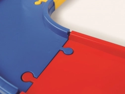 Tre etager forbundet af hurtige nedkørsler og sving giver en 7,4 m lang bane. Børn kan ræse, parkere og opdage nye ruter på hver etage.