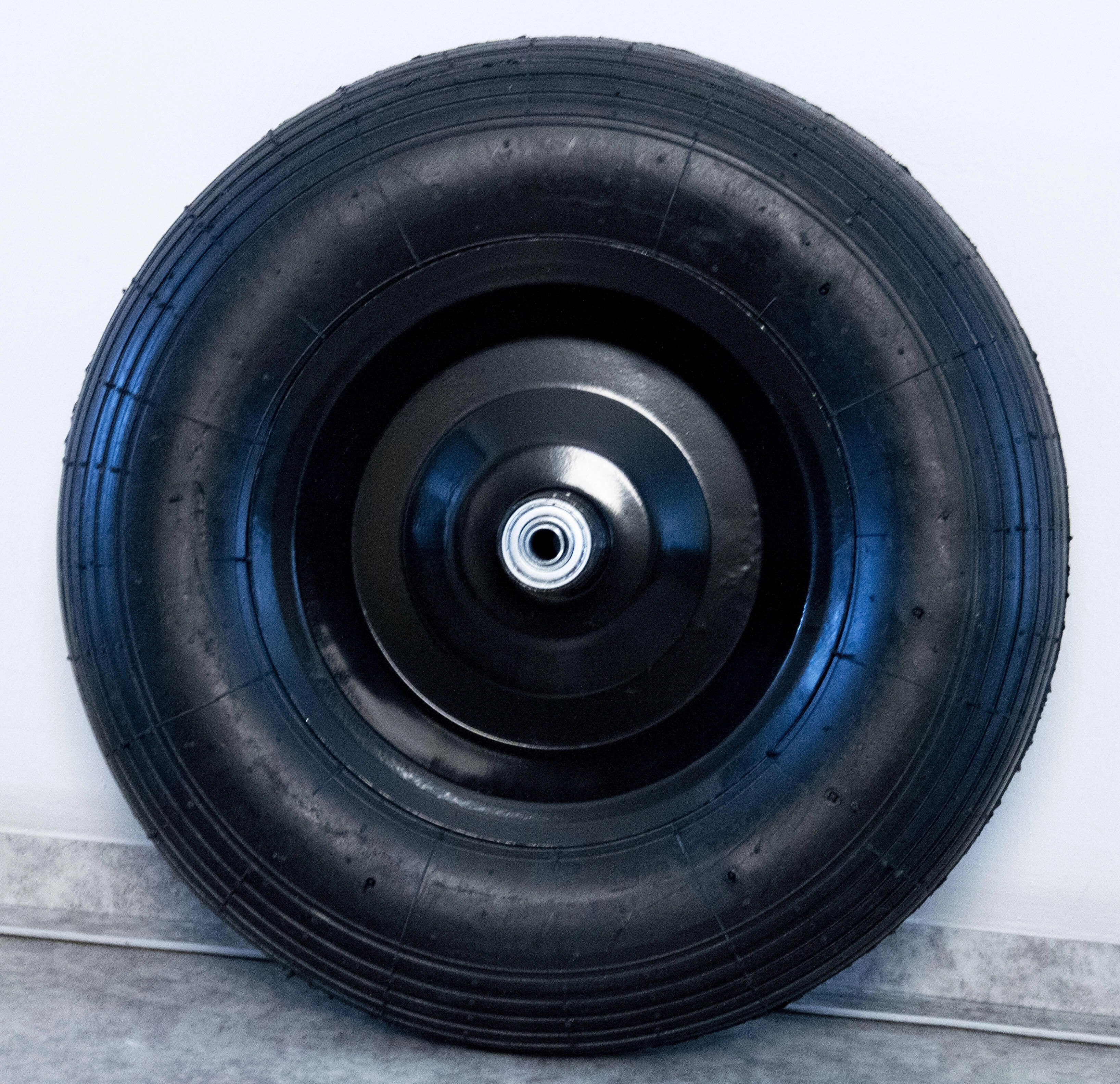 Universelt reserve, oppusteligt hjul med stålfælg er ideelt til trillebøre og vogne. Det tilbyder jævn kørsel, nem montering og bæreevne op til 130 kg for pålidelig brug i haven og på byggepladsen.
