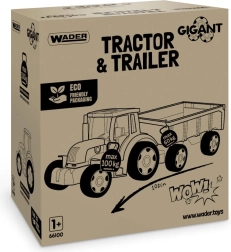 Vores store traktor fra Gigant-serien er udstyret med en anhænger med åbenbar bagklap. Disse køretøjer er ideelle legetøj til børn, uanset om det handler om at bygge, laste eller flytte materialer. Den bevægelige skovl på traktoren fungerer som bulldozer eller læssemaskine, hvilket øger legeglæden. Fordelene ved denne traktor er høj kvalitet, holdbarhed og stærk konstruktion - traktoren bærer op til 100 kg og anhængeren 60 kg.