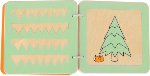 Den træbaserede sansebog med ræven Lex giver børn deres første møde med enkle former, udskæringer og illustrationer, som stimulerer nysgerrighed og fantasi. Robust udførelse, glatte kanter og metalkringe sikrer sikker og behagelig bladring – selv for de mindste hænder.