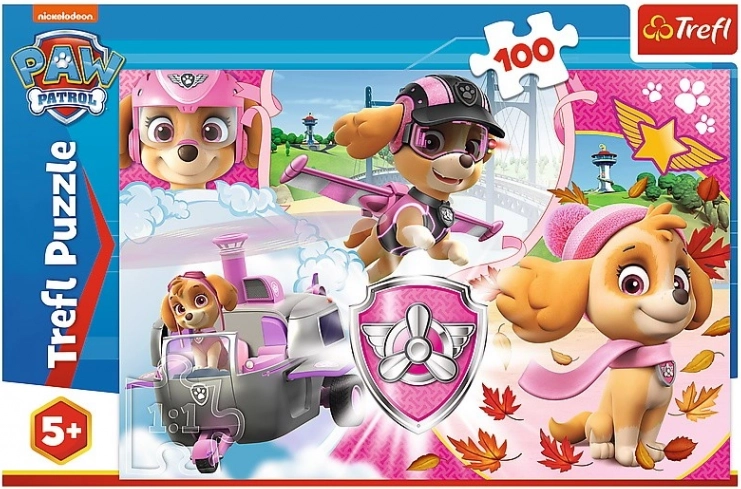 Oplev sjoven med puslespil med 100 brikker med heltinden PAW PATROL – Skye. Når det er samlet, bliver billedet 41 × 27,5 cm. Kvalitets kalandreret papir med blank overflade sikrer levende farver og sikker samling af miljøvenlige materialer.