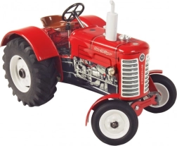 Den klassiske model af traktoren Zetor 50 Super i skala 1:25 vil glæde både samlere og børn. Driften sikres af et fjederurværk med nøgle, og der mangler hverken firetrins gearkasse, bakgear, neutral eller håndbremse. Forakslen er styret via rattet, og den metalliske udførelse giver legetøjet ægte robusthed.