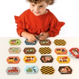 Leder du efter en sjov og pædagogisk aktivitet til dine børn? Pexeso Byggemaskiner er et fremragende valg! Dette spil indeholder pexeso-kort med temaet byggemaskiner, der ikke kun underholder børn, men også bidrager til udviklingen af deres kognitive evner. Den robuste konstruktion er ideel til små hænder, og hele sættet er miljøvenligt, da det er lavet af genbrugsmaterialer og trykt med vegetabilsk blæk.