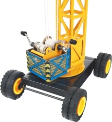 Kranen er udstyret med et tårn, der kan drejes, en justerbar arm og et system til løft af byrder. Du vil blive særligt glad for manuel drift med krumtap, som tillader børnene at træne motoriske færdigheder og koordination af bevægelser. Armens længde er 25 cm, og hele kranen måler 50 cm i højden.