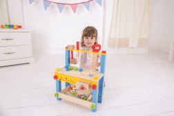 Dette farverige træarbejdsbord fra BIGJIGS TOYS er en fantastisk introduktion til værktøjernes verden. Med realistiske detaljer og sikre træværktøjer øver børn praktiske færdigheder og lærer grundlæggende principper for arbejde med værktøj – på en legende og sikker måde.