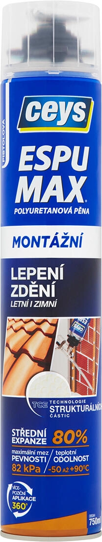 CEYS montage- og limskum er kompakt, tæt og designet til pålidelig limning både indendørs og udendørs. Takket være medium ekspansion på 80 % giver det præcise og rene samlinger uden overdreven opskumning. Den godkendte formular er udviklet til fastgørelse af tagsten med maksimal sikkerhed og langvarig modstand mod vejrpåvirkninger.
