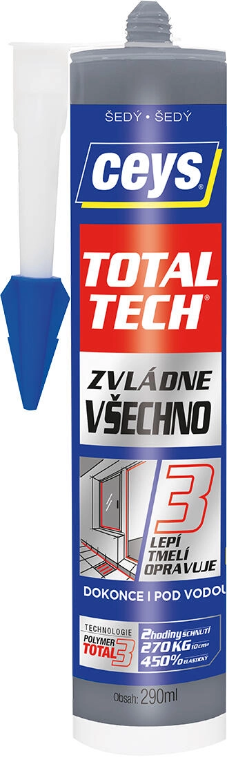 CEYS TOTAL TECH er en hybrid byggfugemasse og lim af ny generation, der klarer montering, limning og tætning under selv de mest krævende forhold. Takket være den ultraelastiske sammensætning (op til 420 %) modstår den revner, vibrationer og stød og forbliver permanent fleksibel. Den skaber vandtætte, stærke og langtidsholdbare samlinger, som er modstandsdygtige over for UV-stråling, skimmel og ekstreme temperaturer.