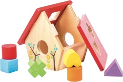 Det charmerende træpuslespil formet som et fuglehus fra Le Toy Van er den perfekte legetøj til børn, der lærer at genkende former og farver. Indeholder 6 farverige træklodser, som kan indsættes i de tilsvarende åbninger, hvilket fremmer finmotorik og hånd-øje-koordination.