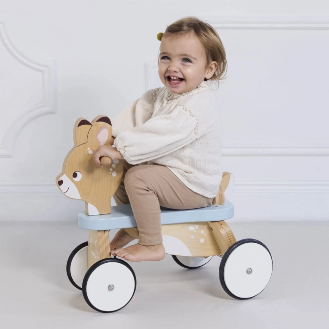 Træløbecyklen Rådyret tilbyder en robust konstruktion af bæredygtigt træ, som sikrer stabil bevægelse og tryghed for små ryttere.