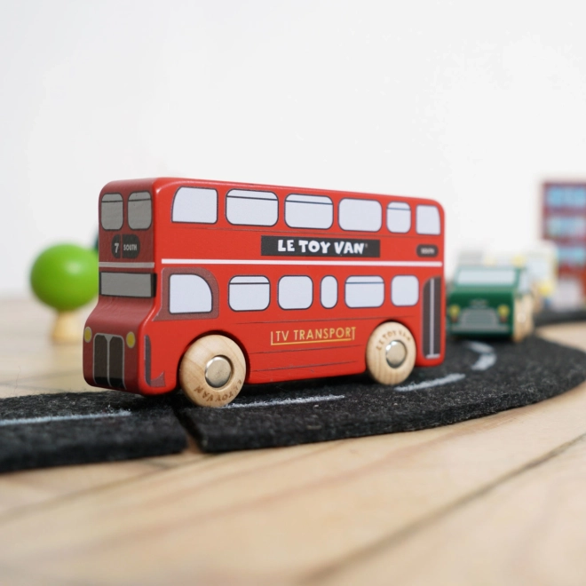 Dyk ned i de travle londonske gader med detaljerede træ-køretøjer fra Le Toy Van. Sættet indeholder en dobbeltdækkerbus, en sort taxa, en brandbil, en ambulance, en politibil og to personbiler. Den robuste konstruktion i bæredygtigt gummitræ og de glatte kanter er ideelle til små hænder, der under legen træner greb, hånd-øje-koordination og fantasi.