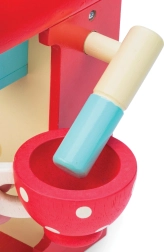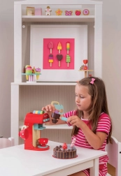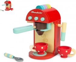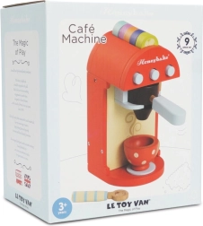 Denne kvalitets trækaffemaskine giver børn en autentisk oplevelse af at lave kaffe. Farvede kapsler kan sættes i portafilteret og “brygge” drikken direkte i den malede kop, og der medfølger også mælkeskummer og ske. Kapslerne kan nemt opbevares i åbningen øverst på kaffemaskinen, så alt er lige ved hånden.