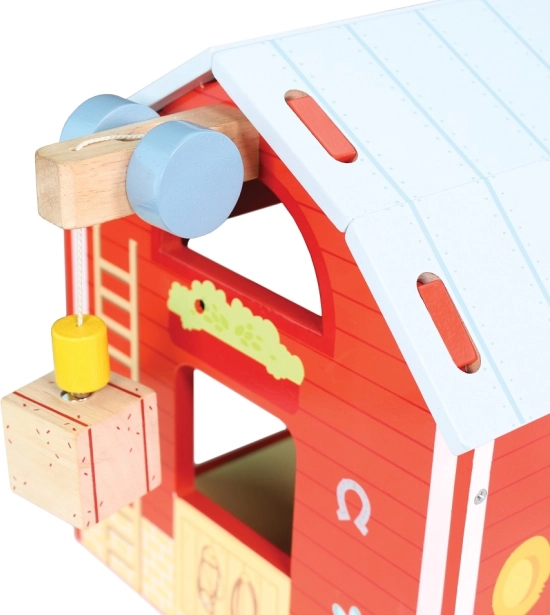 Oplev landidyl med den røde lade fra LE TOY VAN – en omhyggeligt udformet trælegetøjsmodel designet til langvarig leg. Børn vil elske de åbne porte, at kigge gennem vinduerne og den funktionelle magnetiske hejse med snor til at løfte “høballer”. De detaljerede illustrationer inde i og uden på laden understøtter rolleleg og udvikler kognitive færdigheder på en naturlig måde.
