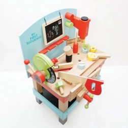 "Mit første arbejdsbænk med værktøj" er ideel til små gør-det-selv-entusiaster, der ønsker at udforske værktøjs- og værkstedsverdenen. Dette legetøj er lavet af højkvalitets FSC-træ, hvilket sikrer både langvarig holdbarhed og miljøvenlighed. Det indeholder 20 dele, herunder boremaskine, rundsav, klemme, sav, hammer, skruetrækker og mange andre værktøjer. Der er også en tavle til kridttegning til kreativ udtryk.