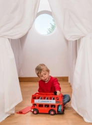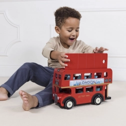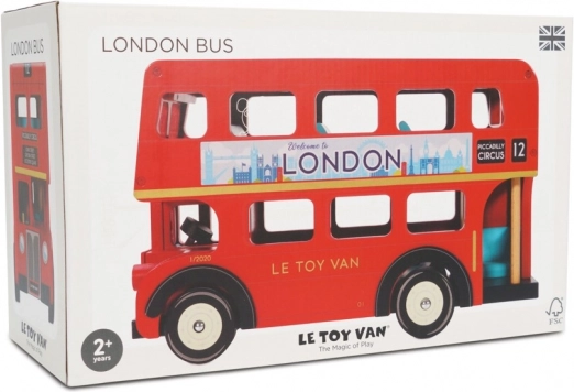 Oplev Londons skønheder med træ dobbeltdækker bus Le Toy Van. Dette ikoniske legetøj, designet med detaljer som realistisk skiltning og et aftageligt tag, tilbyder en fantastisk måde at udvikle børns fantasi og finmotorik.