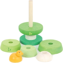 Opdag et kvalitets stablelegetøj formet som et træ med en sød lille fugl på toppen. Delene i forskellige grønne nuancer motiverer børn til at skelne mellem farver og former, mens den stabile base sikrer sikker leg. Den fleksible pind gør stablingen komfortabel og skånsom selv for de mindste hænder.