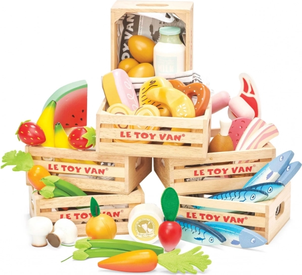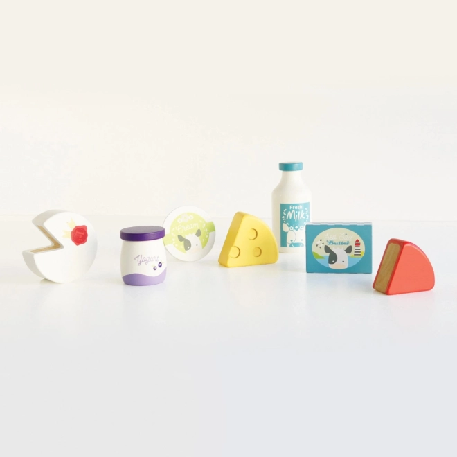 Denne trækasse med mejeriprodukter fra mærket Le Toy Van er ideel til børn, der elsker at lege butik eller køkken. Sættet indeholder en mælkeflaske, smør, yoghurt, fløde og tre typer oste, hver del designet til at se realistisk ud. Disse legetøj er ikke kun sjove, men også uddannelsesmæssige, da de hjælper børn med at forstå vigtigheden af en balanceret kost.