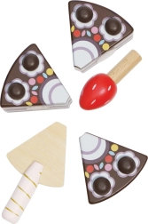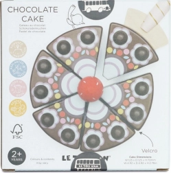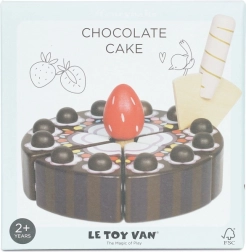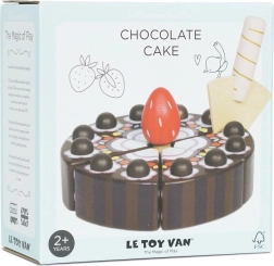 Servér for børn og gæster en lækkert træ chokoladekage fra LE TOY VAN. Håndmalede stykker i brune nuancer med dekorationer og en jordbær på toppen holdes sammen af velcro, så de let kan skæres og serveres. Legetøj af bæredygtigt træ med ugiftige farver understøtter finmotorik, fingerfærdighed og fantasifuld rolleleg.