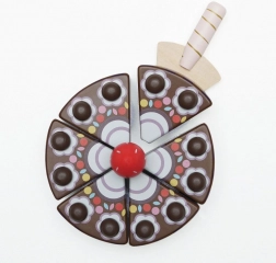 Seks stykker forbundet med velcro kan nemt “skæres” og deles. Børn træner finmotorik, koordination og sociale færdigheder under fest med venner.