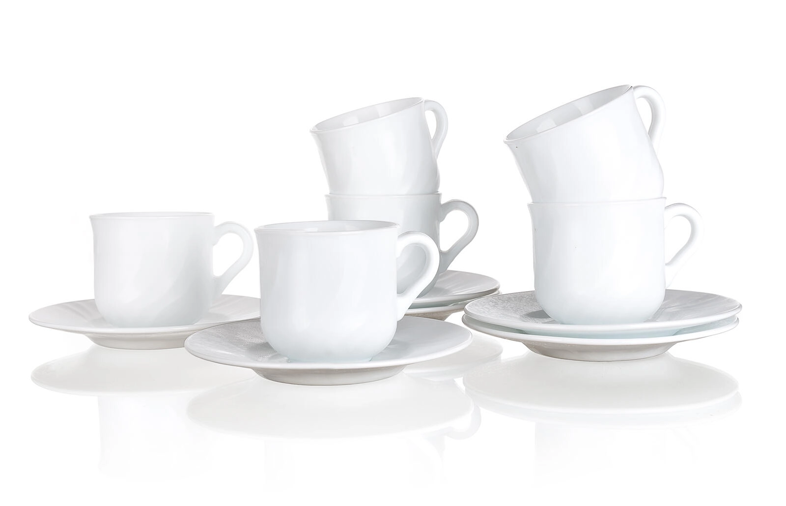 Komplet sæt med kopper og underkopper er ideelt til familiesmorgenmad, gæster og mindre gastro-miljøer.