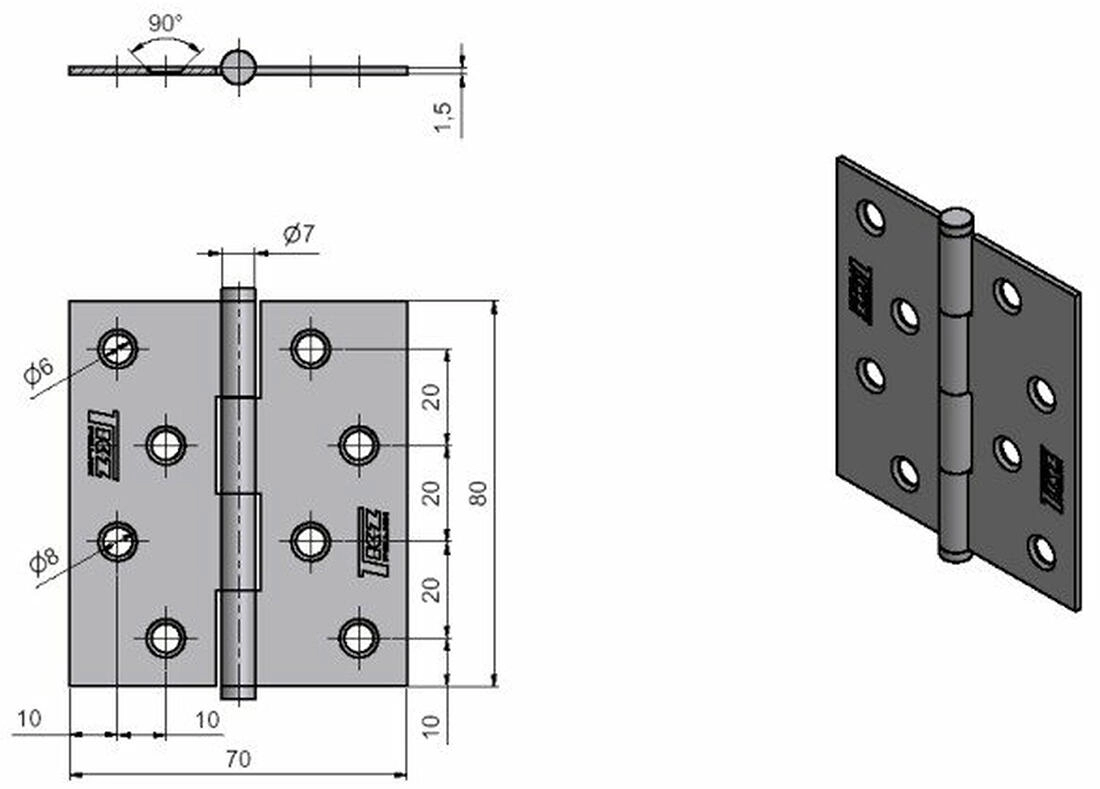 Det pålidelige hængsel til montering i dørblad med en længde på 80 mm er ideelt til både indendørs og tekniske anvendelser. Den galvaniserede overflade sikrer korrosionsbestandighed og langvarig funktion, selv ved hyppig brug.