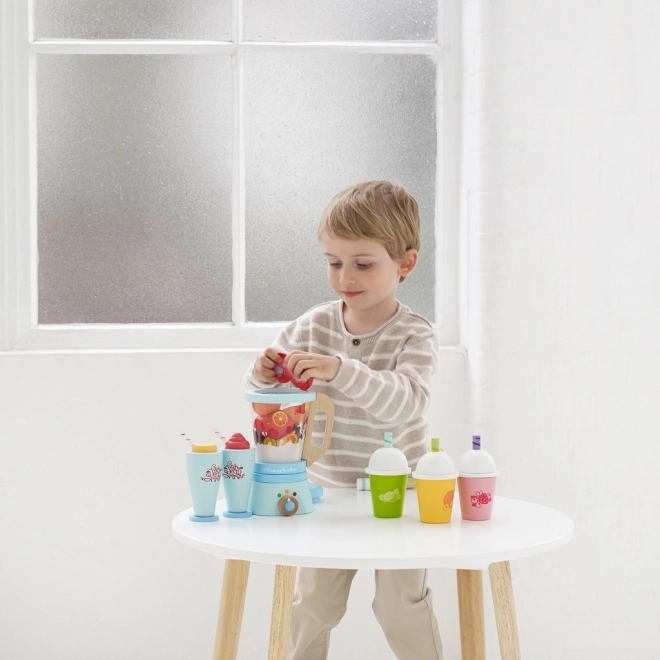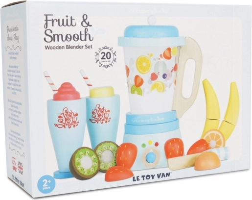Mix en sund portion sjov til børnene med den træbaserede smoothieblender fra LE TOY VAN. Sættet indeholder en klassisk blender med aftagelig kande, 6 stykker skærefrugt med velcro, trækniv og 2 glas med sugerør. Fremstillet af FSC-certificeret træ, hånddekoreret med giftfri, vandbaserede farver og prisbelønnet for kvalitet og legeværdi.