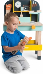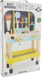Den træarbejdsbænk ALEX fra LE TOY VAN tilbyder alt, hvad små reparatører behøver for realistisk leg. Takket være den solide udførelse i certificeret FSC-træ og giftfri farver er den sikker, holdbar og skånsom mod naturen. Den har indbygget rundsav, måleskala og skruestik, øverste hylde med kroge og nederste opbevaringsplads til ekstra udstyr.