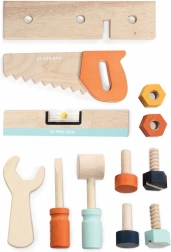 Det rige sæt med 12 trætilbehør er ideelt til små børnehænder: sav, hammer, skruetrækker, nøgle, vaterpas, 2 skruer, 2 bolte, 2 søm og en plade. Legen udvikler kreativitet, logisk tænkning og håndelag. Bænken har modtaget flere priser og er en del af den prisbelønnede kollektion Biler & byggeri fra LE TOY VAN.