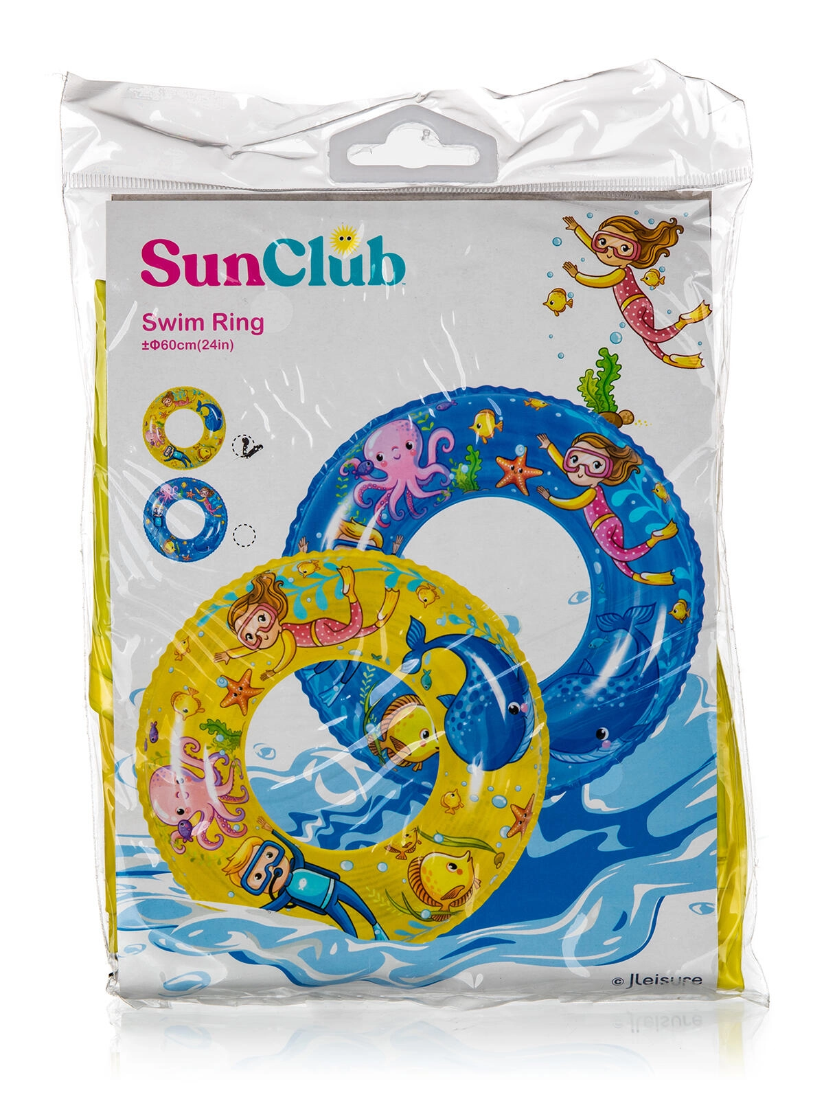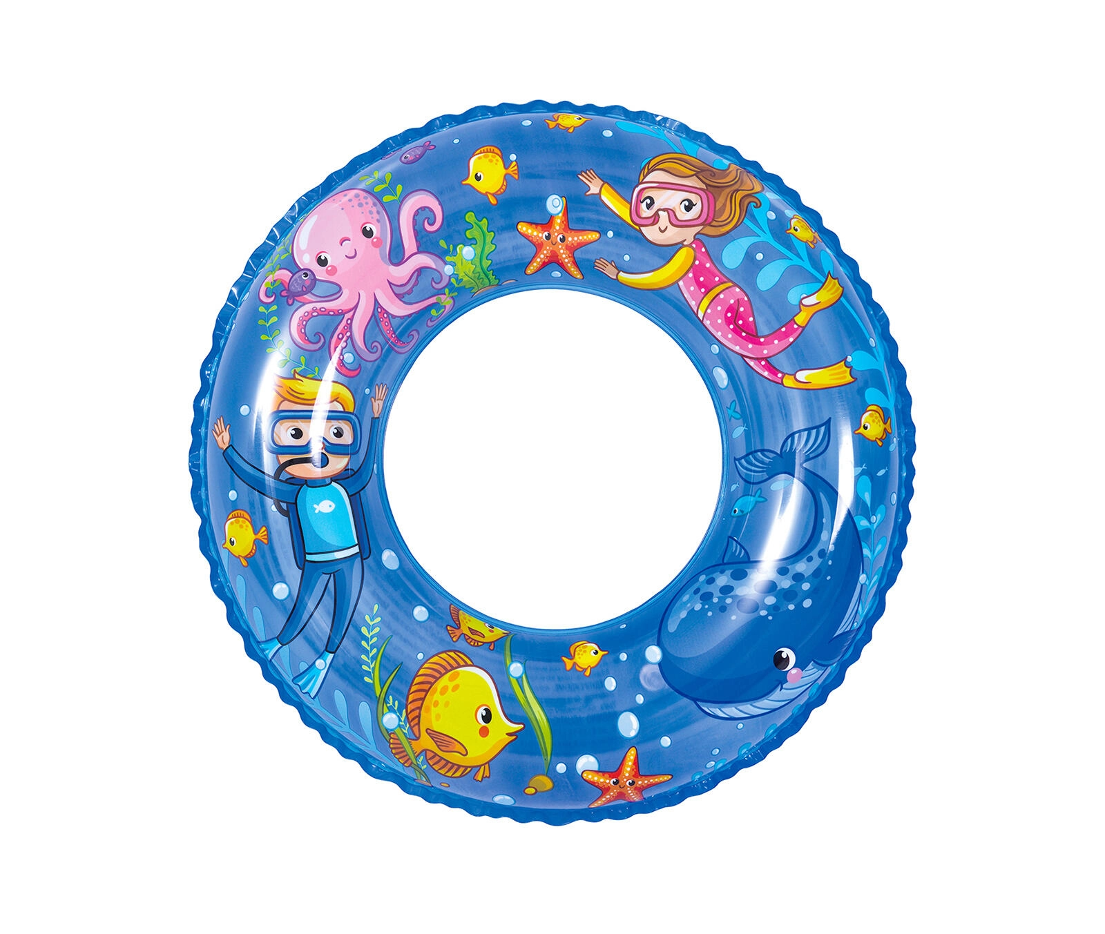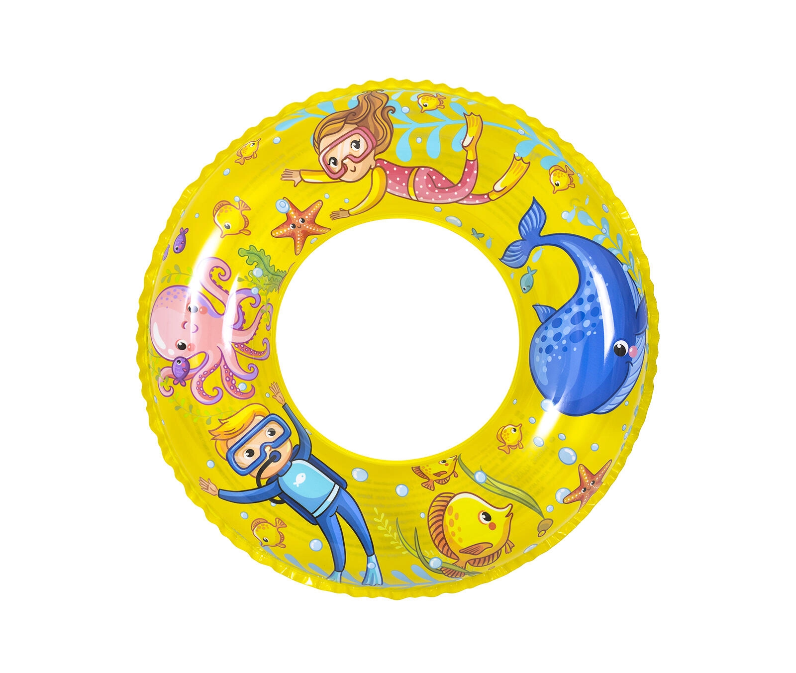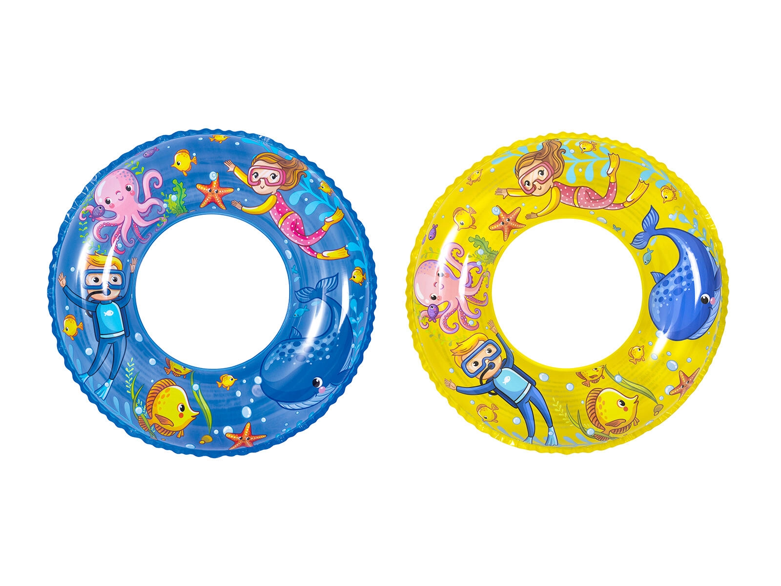 Motiver af havdyr, dykkere og farverige fisk gør ringen attraktiv og motiverer børn til at bevæge sig i vandet. Vælg mellem 2 legesyge farver – gul og blå og giv børnene glæde ved at svømme.